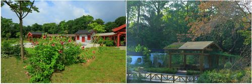 藤本植物园以大型设施西关居、围屋和文昌亭连接成景观主轴线,同时构建植物线、文化线、儿童游乐线,建有攀援灌木植物区、观赏藤本植物区、药用藤本植物区和大型藤本植物区,展示藤本植物的观赏性与经济价值,以及在城市垂直绿化、生态景观营造等方面的应用。