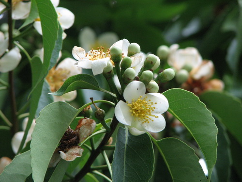 另有一种细叶杜英,为杜英属栽培种,株型稍散乱些,叶片略狭小,花也稍小,但花量更大,一时间,玉英缤纷、乱琼飞舞,蝴蝶、蜜蜂穿梭期间,怎一个美字了得?!