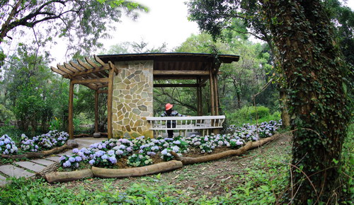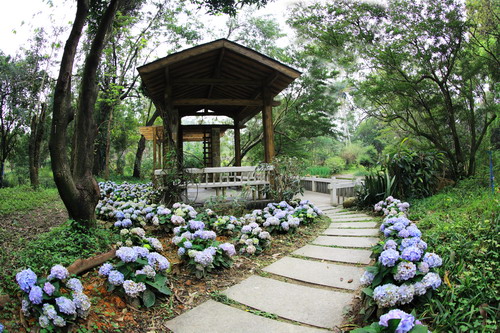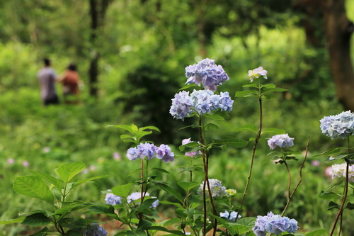 我一直认为赏花心情受环境影响很大,就说这个绣球花吧,如果你看阳台上的花盆里种的和你在庭院里看到花,两者的感觉是完全不一样的。在华南植物园药园里的林子深处看到这盛开绣球,有没有绿野仙踪的感觉?再加上花旁边的亭子,脑海里是否闪过亭子里应该有个仙女?其实此时此刻自己就是花丛中的仙女了!