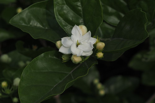 茉莉花往往三五朵聚伞花序顶生,夜间7-8点开放,花小而内敛,花瓣洁白无暇,清香淡雅。茉莉花秀外慧中,色、香、姿构成其独特美感,非常符合中国人的审美情趣和道德品质的追求,深受人们的喜爱。后来茉莉花传到江南,人们还为茉莉花写了一首具有东方美的中国民歌《茉莉花》,歌中抒写了自然界的景物,表现出一种淳朴优美的感情,旋律优美平和,展现着中国古老的文化。