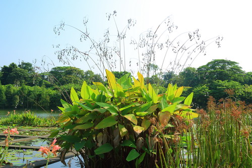 垂花再力花产中非及美洲,生于沼泽及河岸边。国内引进通常将其用作水景绿化的上品花卉,广泛用于湿地景观布置,群植于水池边沿或水生低地,形成独特的水景景观。