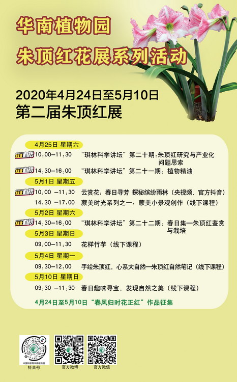 本次花展期间我园将举办各种线上和线下的活动和课程,欢迎大家前来现场或在线上参加,具体活动见图。针对每个活动及课程,我们也会分别发布微信推送文,敬请关注近期我园的公众号推送。