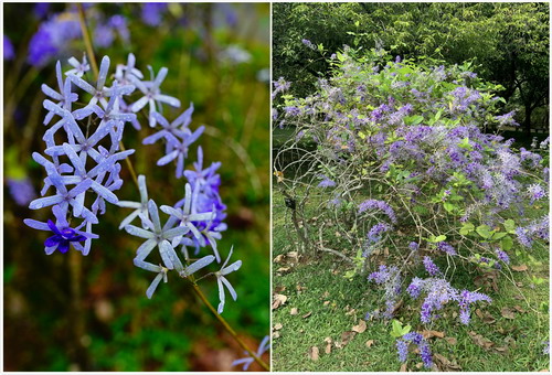 值得一提的是,蓝花藤的萼片掉落后收集起来还可以做花环,在国外也称之“紫色的花环(Purple Wreath)”或“皇后的花环(Queen's Wreath)”。