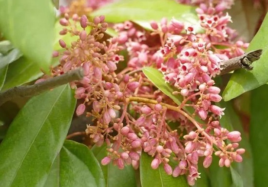 每到春天,长柄银叶树的花序一束一束渐次长出,一朵朵圆筒状的花苞,密密麻麻,铺天盖地的粉红装饰了整个枝条,随风轻晃,摇曳多姿。