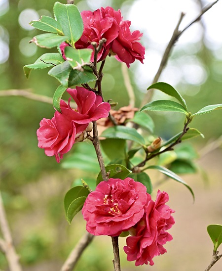 冬末春初,万花凋谢,唯有山茶仍傲立于枝头,迎着寒风尽情地绽放着。