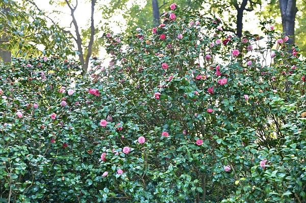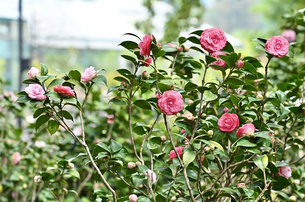 华南植物园山茶园收集了300多种山茶属植物,茶梅、十八学士、白雪塔、金花茶等观赏性高的山茶花正次第绽放。