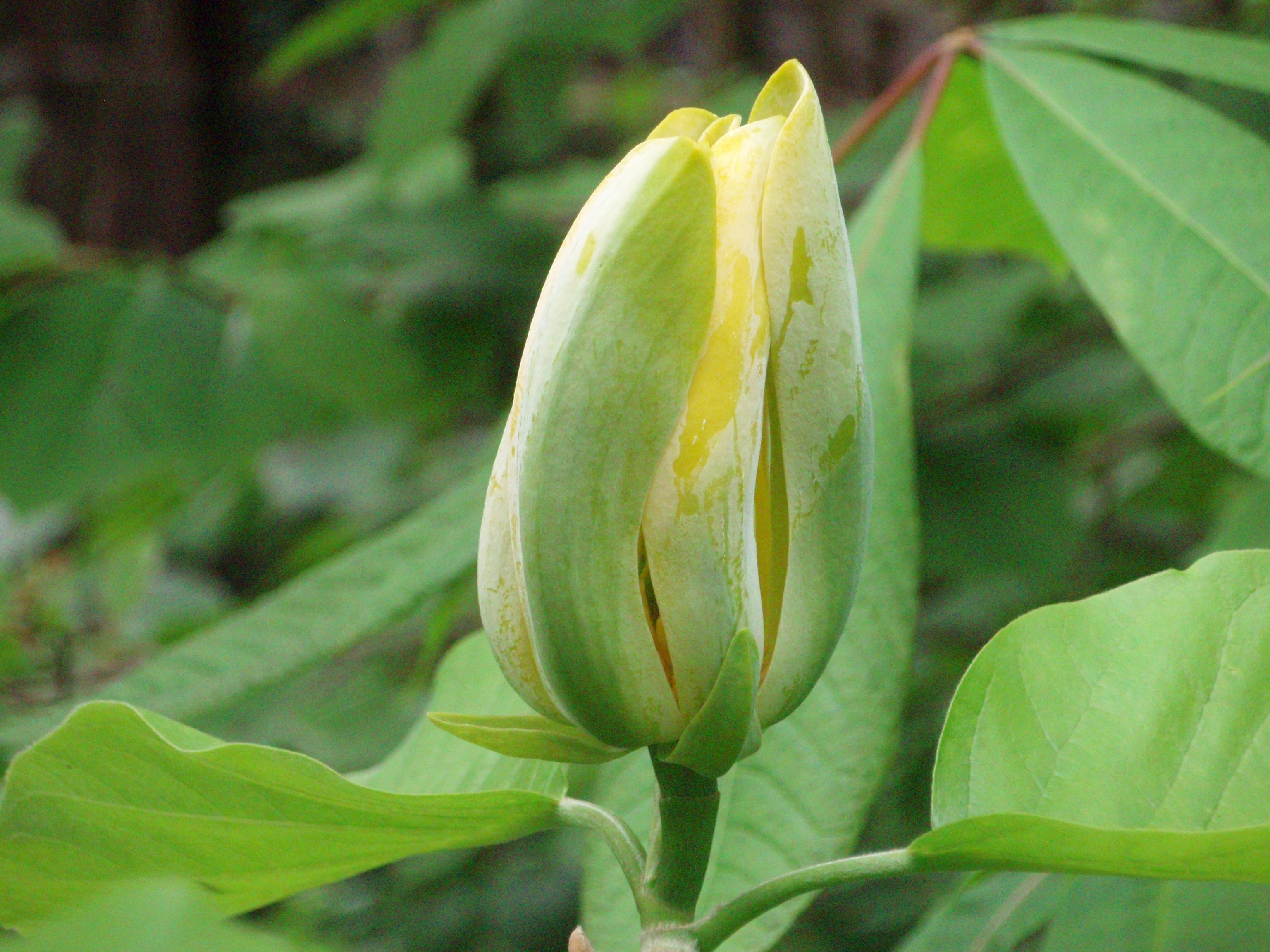 ‘飞黄’玉兰,源于白玉兰的花芽突变,花初开黄色,基部黄绿色,盛开时转为浅黄色是稀有的黄花品种。