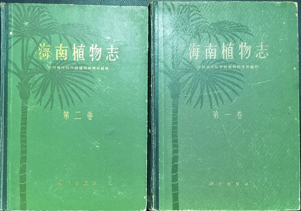 《海南植物志》,第一卷第二卷,封面使用琼棕图案