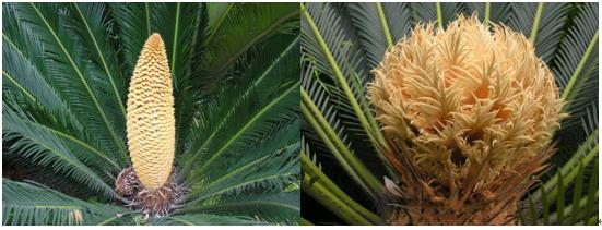 ▲苏铁Cycas revoluta的雄花和雌花(资料图片)