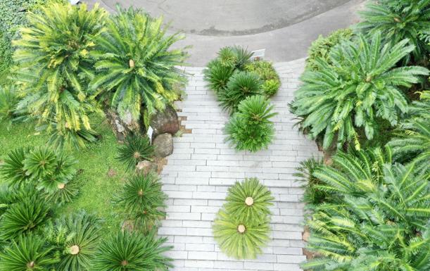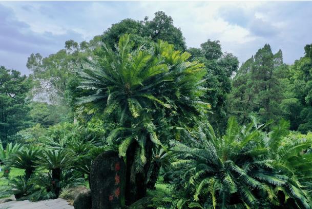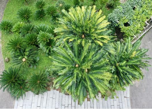 ▲镇守苏铁园入口的越南篦齿苏铁(宁敏华摄)