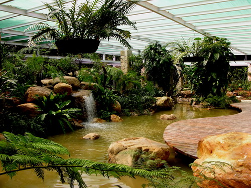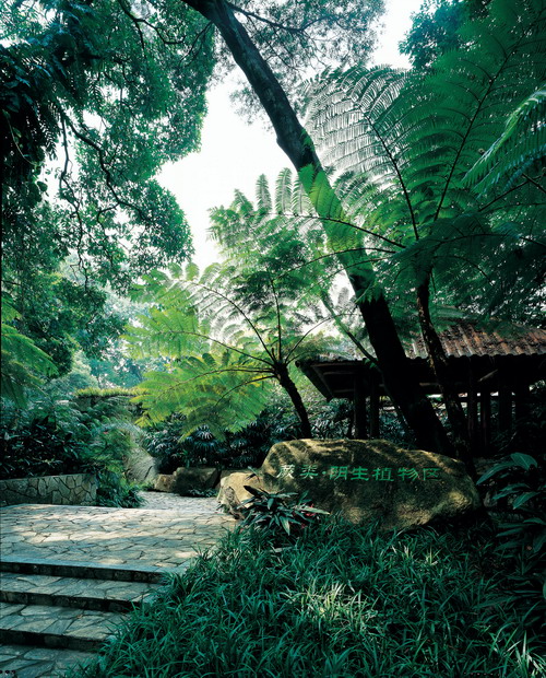 占地约10亩,是我国最早建立的蕨类暨阴生植物专类园。主要展示了蕨类植物共36科350多种,包括笔筒树、黑桫椤、金毛狗、福建观音座莲等一批珍稀蕨类植物。该园利用乔木、藤本植物、叠山流水结合雾化系统,营造适应蕨类植物的喜阴湿生境,石缝流水间郁郁葱葱,如同典型的南亚热带沟谷雨林。