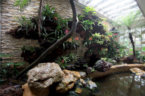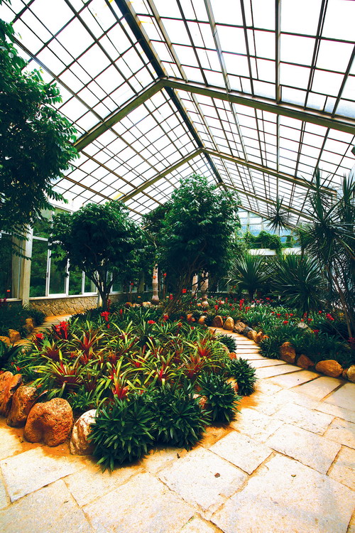 占地面积约16000平方米,主要以凤梨科植物为主。植物主要分布在游廊两侧以及玻璃温室内,游廊左侧以高大的乔木为主,林相优美,配置凤梨科水塔花属植物作为地被植物;右侧主要以地生凤梨植物为主。温室内以观赏凤梨科为主,并兼种了棕榈植物和热带经济植物。至今已引种15属250种,多数用于观赏。