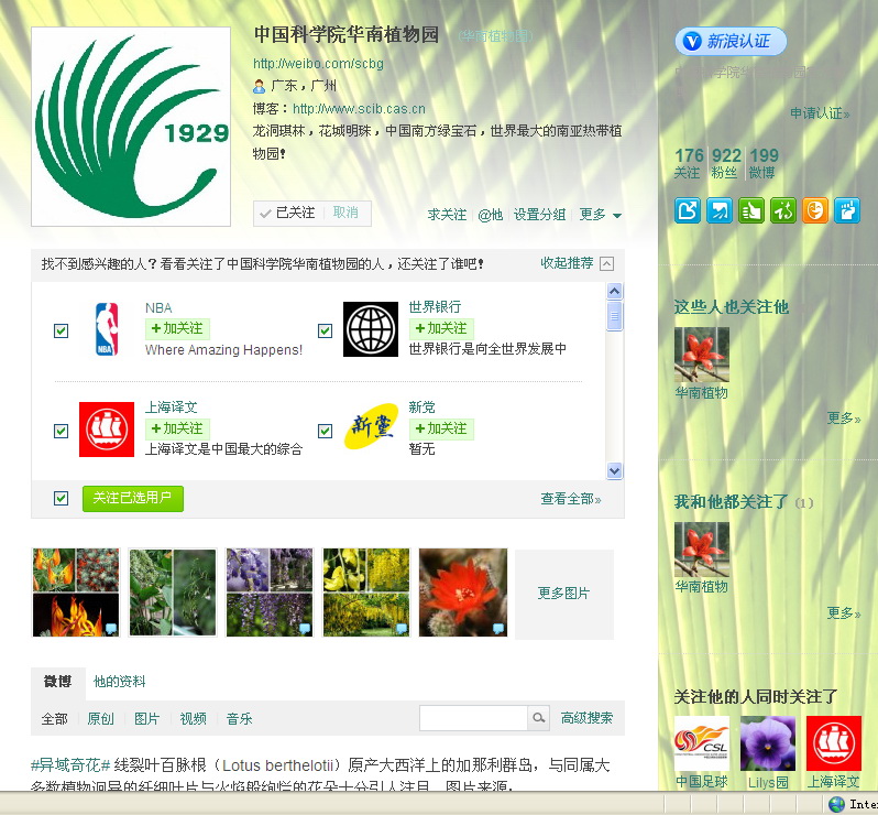 。在我们的微博,我们会发布一些有关植物园科普旅游信息,敬请关注。