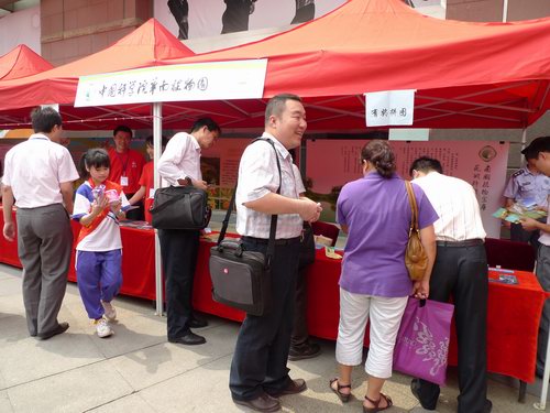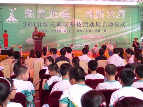5月14日,广州市天河区科技活动周启动仪式在宏城广场隆重举行,今年活动的主题为“绿色亚运、创新天河”。广州市天河区副区长廖国胜、市科技和信息化局马曙副局长、天河区政协副主席吴兰桂,以及20多家科普基地单位和3千多名市民参加。华南植物园作为协办单位亦参加了此次活动。