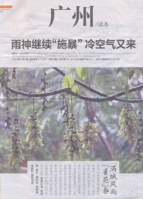 《南方都市报》等媒体大篇幅报道华南植物园禾雀花展