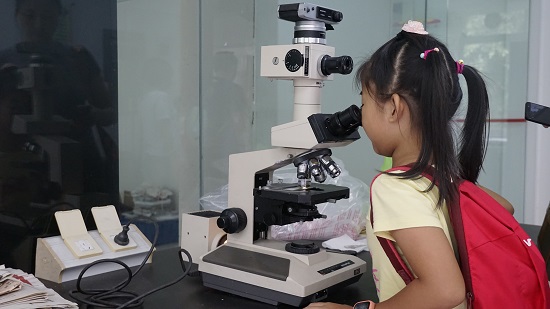 喝了灵芝茶,但它的微观结构又是如何?在放大了一千倍的光学显微镜下,学员们第一次见到了灵芝孢子,状如米粒,有着厚厚的细胞壁。原来,观测显微镜下的蘑菇微观结构,也是鉴定的重要依据。