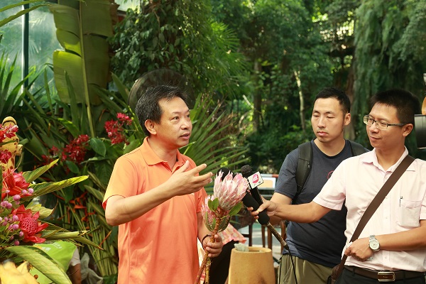 9月29日,华南植物园召开新闻发布会,园艺中心副主任廖景平博士向媒体通报了本次帝王花展的情况。广东电视台、广州电视台、南方日报、广州日报、南方都市报、信息时报、新快报、羊城地铁报、广东科技报等十多家媒体记者近30人参加了发布会。