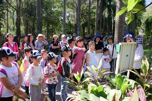 此次活动不仅内容极为丰富,参加人数也比往常要多。活动开始,小朋友们根据自己喜欢的植物叶片进行了分组,分别为:千年木组、银杏组、叶上花组和马褂木组。紧跟科普老师的步伐,倾听老师的讲解,不断发现身边那些植物与科学小知识,比如神奇的叶上花、面包树为何叫面包树、菠萝蜜究竟是怎么长的、行道树红背桂叶背后的奥秘、神奇的叉叶木、树木的绞杀现象等等。