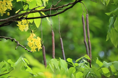 腊肠是广州特产,腊肠树却是漂洋过海的洋树种,现在正是果熟期,抬头看一看,一条条的腊肠树果实,是不是很像我们爱吃的腊肠?腊肠里不是肉肉,住着种子宝宝。