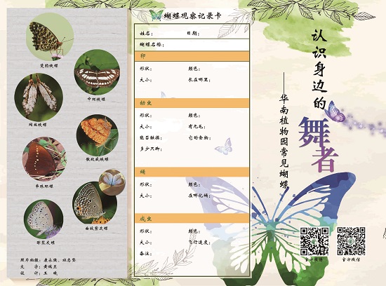 导师通过讲座、小视频,为大家讲解蝴蝶的特征、种类、生活习性,与自然生态的关系。介绍蝴蝶与蛾的区别,带大家观察植物园收藏制作的蝴蝶标本,认识植物园常见的蝴蝶种类。
