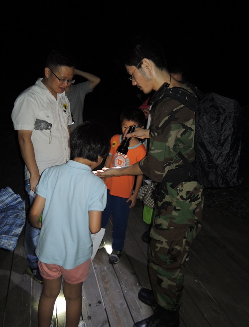 发放蝴蝶自然观察卡,由导师带领大家到园里寻找报喜斑粉蝶。观察它们不同时期的形态特点,了解它们是如何化蛹,以及与神秘寄主植物的关系。在导师指导下,进行自然观察记录。并沿着生物园、杜鹃园等路线观察其他小动物、小昆虫。