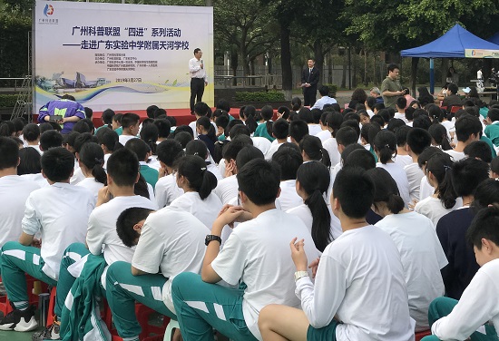 4月27日,由广州科普联盟组织主办的“四进”系列活动,走进广东实验中学附属天河学校,广州市科学技术局引进管理处副处长林晓燕,广东科学中心党委副书记朱才毅,广东实验中学附属天河学校常务副校长黄燕文等领导出席了本次活动。活动旨在进一步推进广州地区科学知识普及工作,促进科普宣传工作的全面化、市民化,提高全民科学素养。科普“四进”是让科普活动“进社区、进农村、进学校、进企业”,以直观生动、轻松易懂、强化互动等多样化方式,让学生感受科技创新、科学传播和智慧生活的魅力。