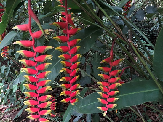 金嘴蝎尾蕉艳红色的花朵垂挂着,远远望去,犹如一串串红色的鞭炮。