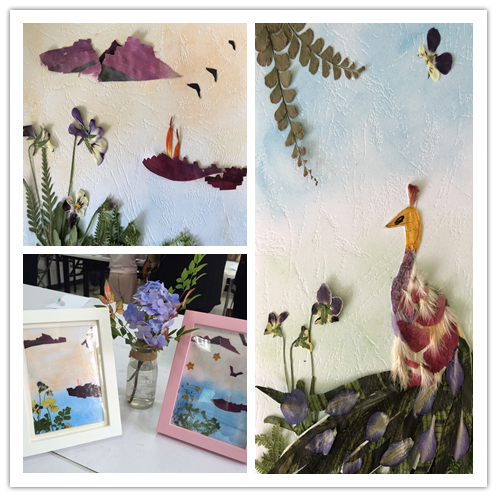 多姿多彩的竹芋叶子被老师用压花板压制成干叶,保留了叶子原来鲜艳的颜色和美丽的形态。在老师的示范指引下,学员们利用竹芋叶子和干花制作出一幅幅植物与艺术相结合的植物标本画。
