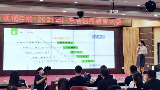 4月19日,由广东省林业局主办的“读懂自然”2021年广东省首届自然教育大赛决赛在广东省龙眼洞林场隆重举行,来自然教育行业的20个单位的选手参与了决赛。鼎湖山保护区代表罗连对自然教育课程之《寻找神奇的叶子——植物生长需要适宜的环境条件》,精彩解说,她生动地讲述了秋海棠科(Begoniaceae)植物紫背天葵(Begonia fimbristipula)的生态习性和形态特征,获得与会评委的认可,经激烈逐角最终获优秀奖。