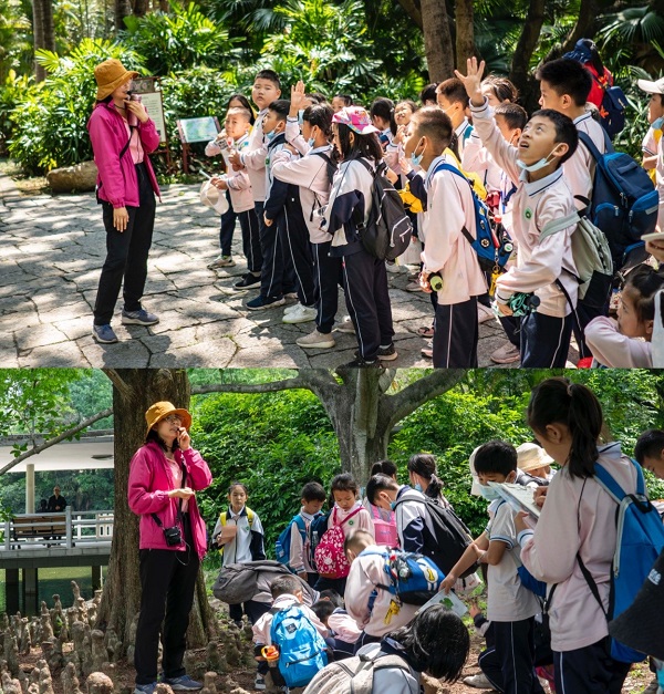 春风熏得游人醉,踏青不负好春光。4月29日,清风徐来,水波不兴,植物园里草长莺飞,春意烂漫。春末夏初,阳光未带暑意,空气仍留清爽,正是亲近自然的好时节。来自佛山下东鲁小学的200多名小学生,伴着晨曦中的虫鸣鸟唱,来到了绿意盎然的华南植物园,开展好玩有趣的自然研学活动。