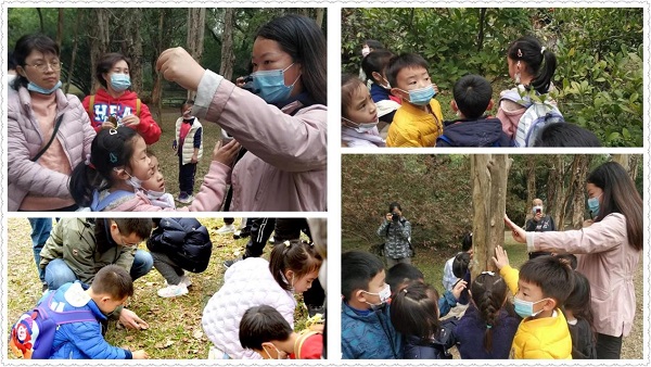 下午,导师先在教室介绍了鼎湖山丰富的生物多样性,千奇百怪的动植物让队员们惊叹连连,课程结束后,还意犹未尽。随后,导师给小小科学家们布置的第一个任务:五感探秘自然。这是根据五感手册的指引,调动自己的视觉、听觉、触觉、味觉和嗅觉,主动探索所处的自然环境,寻找并收集自然物,引导学生深度体验,从而增进与大自然的联结。随后,每位队员将最喜欢的一种自然物描绘下来,并跟大家作分享。有会随着光线变色的小叶子,有摸起来滑溜溜的小种子,有尝起来酸酸的酢酱草,有浓郁香味的薄荷叶,还有各式各样的鸟叫声,等等。通过深度体验,才发现大自然是如此神奇。