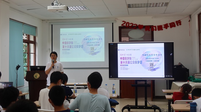 2022年5月22日,由华南植物园组织的公众科学日系列活动成功举办。活动包括开展《走进科研》科普讲座、“我的名字你的姓氏之植物故事”科普课程和“夜幕下的精灵”夜观活动。尽管当时疫情反复、当天大雨将至,活动仍坚持“科学不失约、科普零距离”,现场吸引了逾百名公众参加,线上也有180余位公众同步观看了讲座。