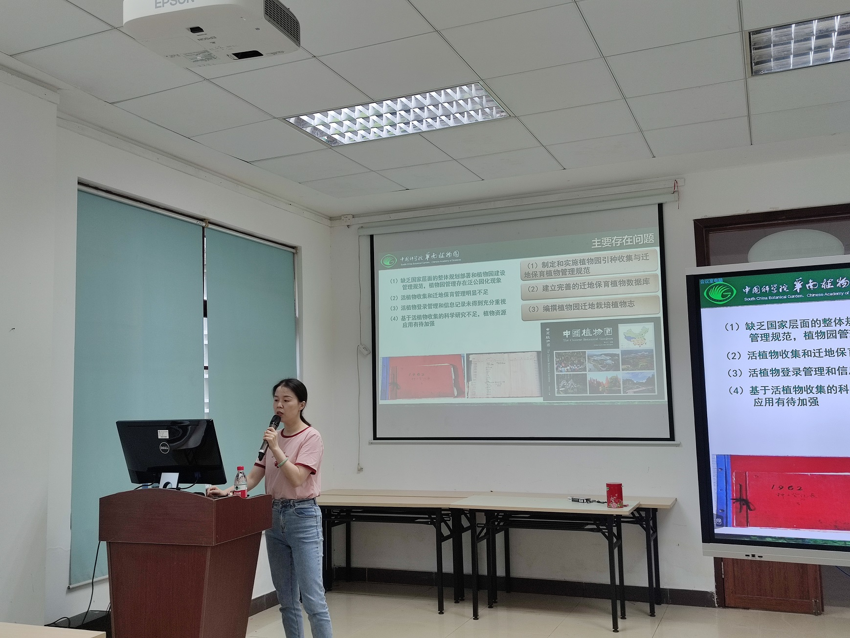 培训会由吴兴主持。他首先介绍了湛青青参加植物园迁地栽培植物志(以下简称迁地志)编撰的工作情况以及前往西双版纳植物园参加科普解说系统的学习情况,希望大家继续做好迁地栽培植物志撰写工作,并通过对西双版纳植物园科普解说系统构建的学习分享,思考在今后的华南国家植物园的建设中,如何改进现有的解说系统,讲好植物故事。