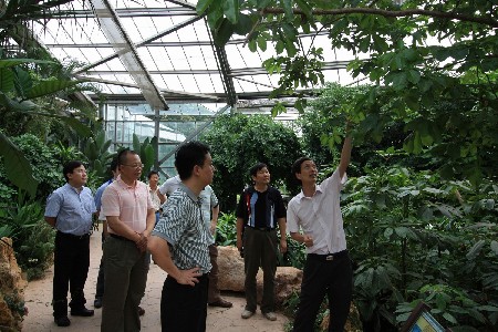 7月5日,共青团广东省委书记谭君铁、省青联秘书长张硕、以及省青联农林牧渔委员会主任张建生等10名委员参观考察了华南植物园。省青联常委、园党委书记任海,省青联委员、园主任助理夏汉平,园艺中心主任助理蒋厚泉等热情接待了代表团的来访。 代表团一行兴致勃勃地参观了三方共建华南植物园的重点项目——大型展...