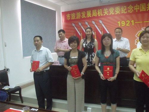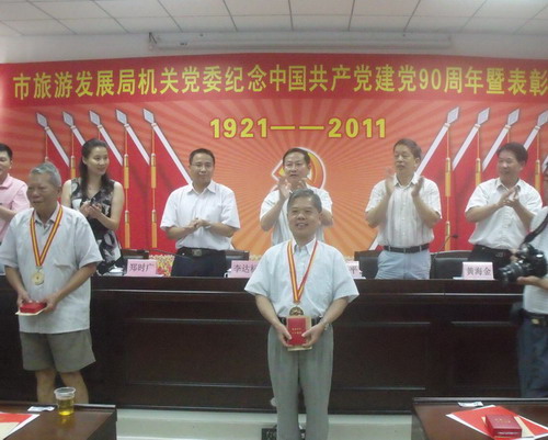 6月24日,肇庆市旅游发展局机关党委召开“纪念中国共产党建党90周年暨表彰大会”,会议表彰了一批先进党支部、优秀共产党员、优秀党务工作者,并为50年以上党龄的老党员颁发了纪念奖章。鼎湖山国家级自然保护管理局多位同志受到表彰,其中常务副局长、党支部书记黄忠良被授予市旅游发展局直属机关“优秀党务工作者”称号,孙涛、欧洁贞被授予“优秀共产党员”称号,丘伟宏获广东省委组织部颁发的“南粤‘七一’纪念奖章”。