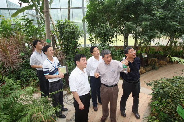 吴建国一行在黄宏文等陪同下还实地考察了华南植物园的办公区、住宅区、研究生公寓等科研与生活设施,并参观了展览温室群和部分专类园等景点。