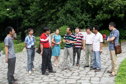 随后,代表团一行重点考察了华南植物园木兰专兰园。考察途中,蒋厚泉与五峰林业局有关领导商谈了发展特色林产品的运营思路和品牌战略。五峰林业局桑子阳博士则与廖景平博士和木兰专类园杨科明技师进行木兰科植物保育和繁殖的技术交流。