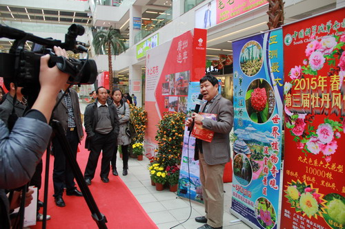 蒋厚泉代表广州地区旅游景区协会在旅游推介会上发言,介绍广州地区景区景点,并重点阐述华南植物园在世界植物园领域的重要地位,并向贵州、广西两地近百家旅行社及新闻媒体推介展示了华南植物园“龙洞琪林”、展览温室群景区和2015年春节“第三届牡丹风情节”的旅游资源,引起媒体记者及参会代表的广泛关注。