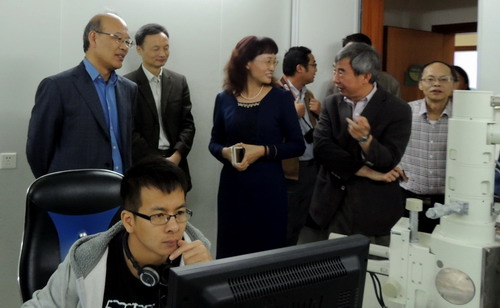 参观遗传改良研究中心实验室(王恩哥 右2)