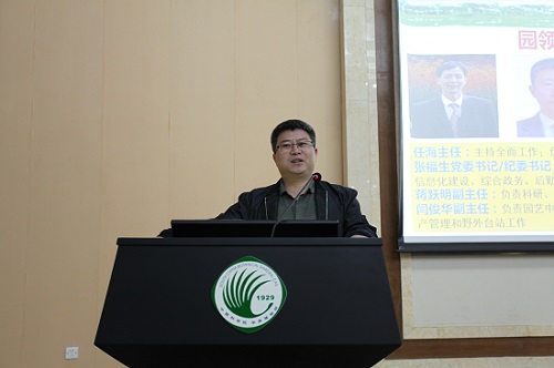 园主任任海简单介绍了分管工作进展,回顾了过去一年全园取得的成绩,分析了存在的问题以及面临的重大挑战,并提出了下一步工作思考。他指出,目前全园各项工作进展良好,同时也要认清形势,始终坚持院党组要求的“民主办院、人才强院、开放兴院”的思想和理念,以“率先行动”计划为主线,统筹谋划特色所建设,调整管理体制和机制,集中人财物,全面推进“一三五”规划各项重点工作。