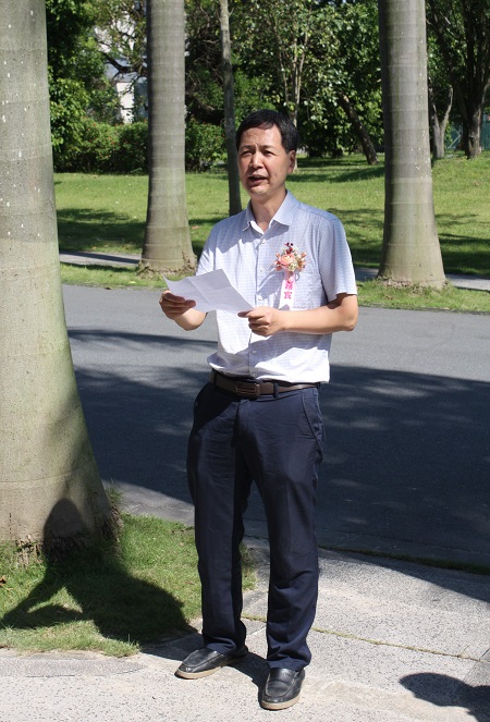 仪式现场,何宗儒代表集团致辞,他表示作为樱花产业的龙头企业,一直致力于中国樱花的品种保护与推广;中科院华南植物园是历史悠久、国际知名的植物研发展机构,双方在植物研发和人才培养等方面合作多年,此次恰逢华南园90周年华诞,特捐赠樱花和景石表示庆贺。