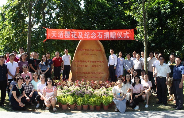为祝贺中国科学院华南植物园90华诞,企业向华南植物园捐赠樱花及纪念景石揭幕仪式于9月20日在植物园科研区和展示区分别举行。天适集团向华南植物园捐赠了20株广州樱和2块纪念景石,董事长何宗儒及部分企业领导出席揭幕仪式。华南植物园主任任海、党委书记/纪委书记张福生,及相关部门负责人、职工和在读研究生代表参加了活动。活动由张福生主持。