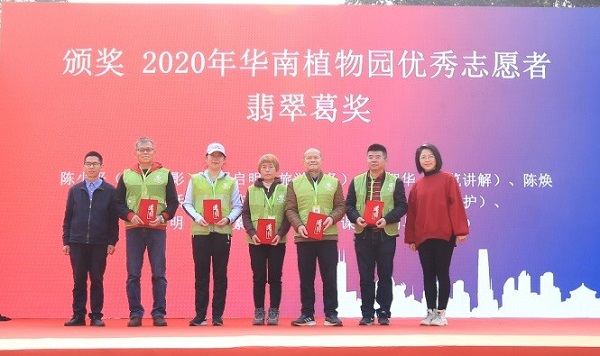 为表彰志愿者们的辛勤付出,此次活动华南植物园联合广州市科普志愿者协会为优秀志愿者们颁发了8大奖项,表彰了67名优秀志愿者和2个优秀团队。翡翠葛奖、无忧花奖、木棉花奖,依次对应一二三等奖,分别表彰总服务时长前50名的优秀志愿者。这是对辛苦一年的志愿者们最好的奖励。