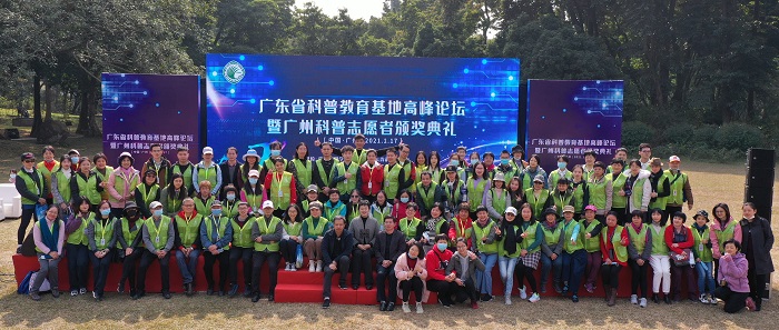 1月17日,广东省科普教育基地高峰论坛暨广州科普志愿者颁奖典礼在华南植物园隆重召开,来自省市科协和省科技厅的领导、知名院士和专家、科研院所和大专院校科普工作者以及社会各界科普志愿者200余人齐聚一堂。典礼在《鼓舞飞扬》的欢乐舞蹈中拉开序幕。