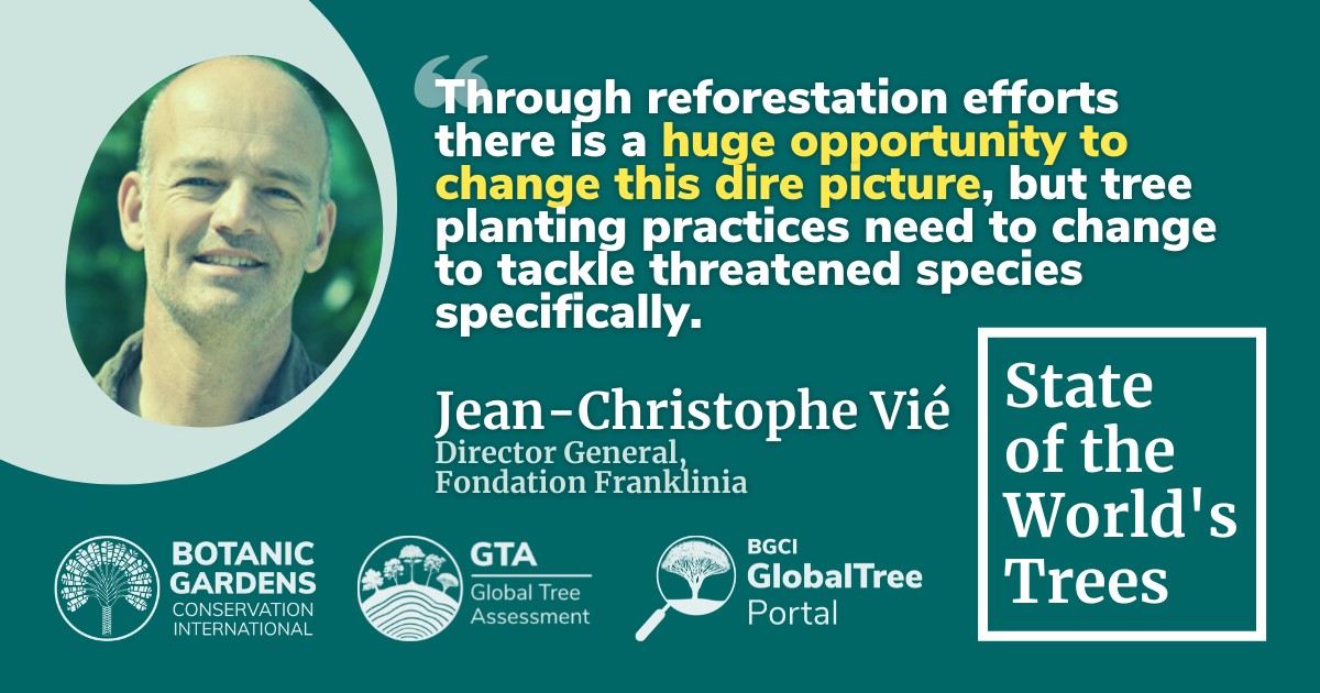 该《报告》结果显示:30%(17500)的树种濒临灭绝(其中400多种树木在野外的存活个体少于50株,至少有142种树木已灭绝),这意味着全球受威胁的树种数量是受威胁的哺乳动物、鸟类、两栖动物和爬行动物总数的两倍。
