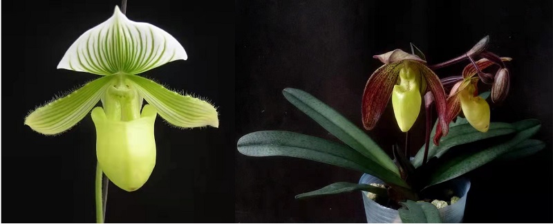 (左:‘中科COP15’兜兰(Paphiopedilum SCBG COP15);右:‘文菲兜兰’(Paphiopedilum Wenfei))