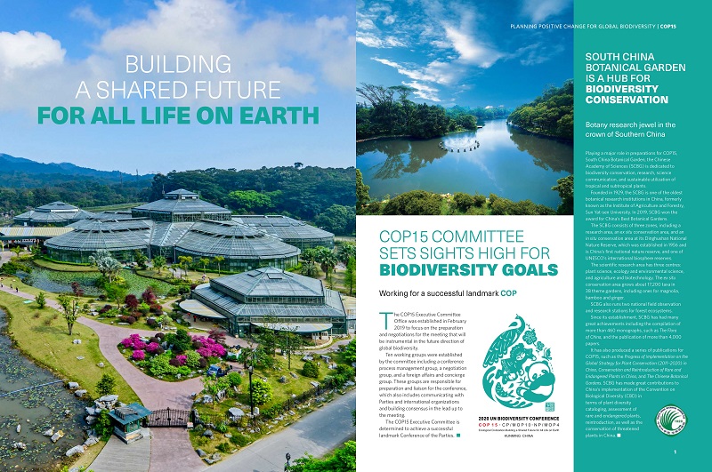 大会期间还发布了COP15宣传专辑,是国际著名期刊Nature与生态环境部、中国科学院合作出版,华南植物园与COP15执委办牵头组织完成。专辑主要介绍生物多样性大会自1992年联合国《生物多样性公约》签署以来的发展状况,历届大会的主题、目标,总结联合国在生物多样性发展上取得的成绩,阐述生物多样性保护的意义,中国在生物多样性领域的发展与优势,以及相关制度法规的发展和政策突破等。