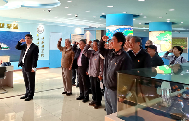 党员们首先参观了中科院“海洋强国·探索创新”党员主题教育基地,在徐海同志领誓下,同志们庄严地重温了入党誓词。该基地展现了海洋科考优秀人物和先进党组织的事迹,反映了广大科研人员科技报国的理想信念。随后,大家参观了南海海洋生物标本馆,在曾母暗沙的立体地形图前,工作人员详细介绍了当年在测绘技术十分落后的条件下,科考人员潜水触摸测量绘制出来的地形图,使中国的“海上疆土”以雄辩的事实得以确认。老一辈科学家的爱国主义精神深深地感染了大家。