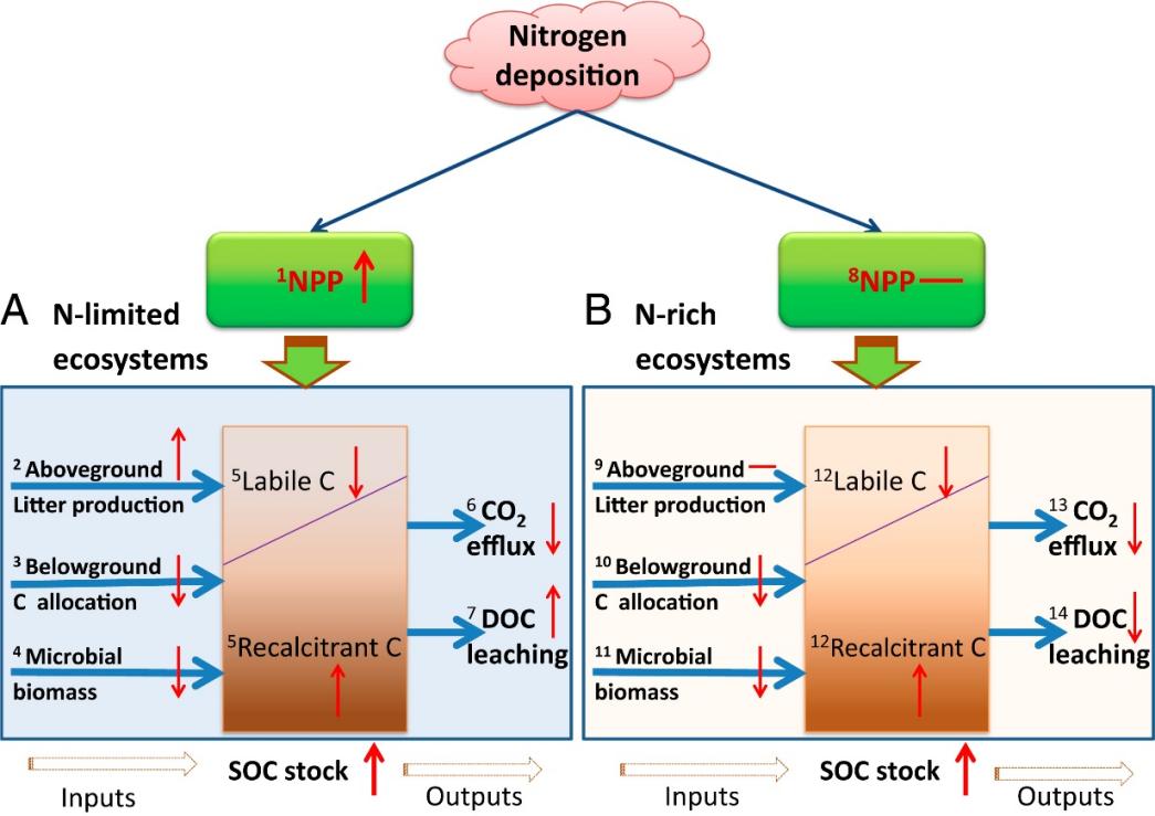 “氮沉降促进热带森林捕获大气碳”研究成果框架图