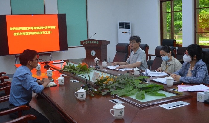 5月11日,国家林草局植物新品种保护办公室组织专家对中国科学院华南植物园宁祖林、陈玲、卢琼妹、李冬梅、刘华等科研人员培育的紫金牛属(Ardisia Sw.)新品种‘紫红荷1号’和‘紫红荷2号’及无忧花属(Saraca L.)新品种‘四季无忧’进行了现场审查。园艺中心副主任宁祖林及引种保育相关工作人员参加汇报和现场审定。